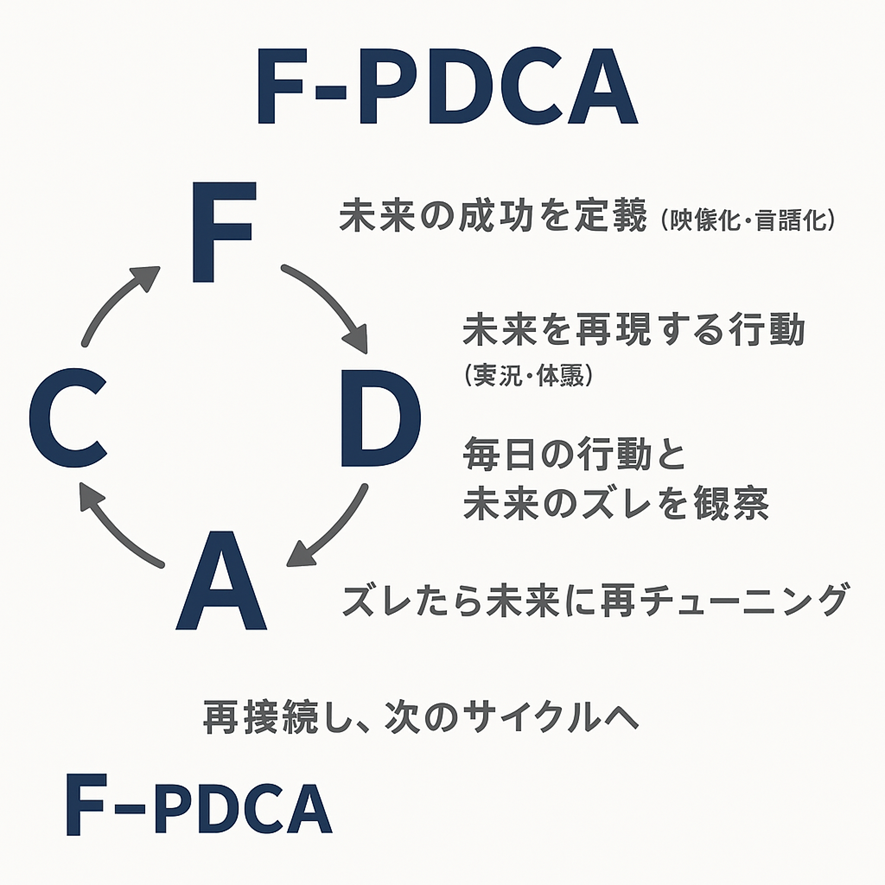 未来から逆算して今の行動を定めるバックキャスティングを基盤に、F-PDCA(Future-PDCA)という独自フレームワークを実践します。さらに、エニアグラムに基づく<性格応用心理学>を取り入れ、未来実現を阻む「エゴによる自我の抵抗」のメカニズムを理解し、エゴから解放されるプロセスを重視します。