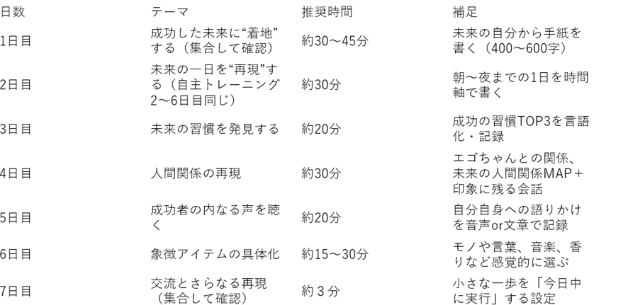 (診断士)■未来からの手紙で描いた「豊かで自由な私」は、まだ完全に実現したわけではないですが、その“前兆”が7日間のワークを繰り返すと、あらゆる出来事の中に現れていたと感じています。掃除・朝カフェ・読書といった日常の習慣から、人間関係、言葉の使い方、思考のあり方など、どれもが「未来の私」とリンクし始めています。